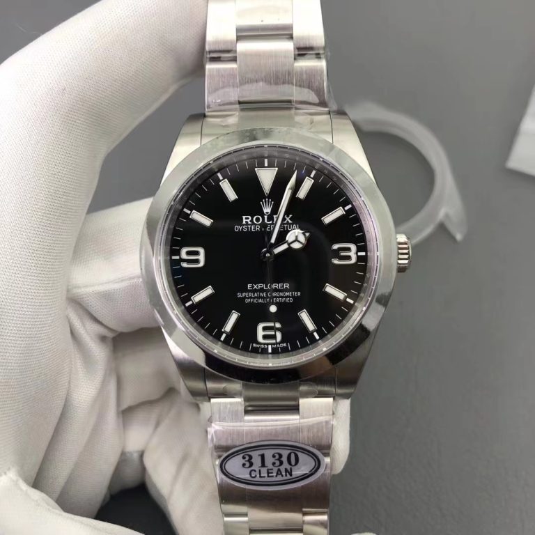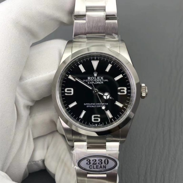6時位置に小さな王冠ロゴが入った最新仕様のエクスプローラーI(36mm)です。これまでこのモデルはEW工場(ミドルクラス品質)とGM工場(ラグが太すぎるという欠点あり)しか製造していませんでした。 今回、細部のブラッシュアップを得意とするCLEAN工場が参入したことで、今後のエクスプローラーIの最高ランクのロレックス N級品は、間違いなくCLEAN工場製がトップの座に就くことになるでしょう。